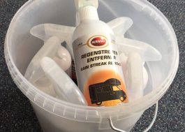 Dešti na cestách jen tak neujedete. Rain streak remover je silný čisticí prostředek, který odstraní černé pruhy na karavanech a obytných vozech. Odstraní i znečištění olejem, mastnoty, nafty ze silnic na gelovém plášti, hladké stěně i hrubším povrchu.