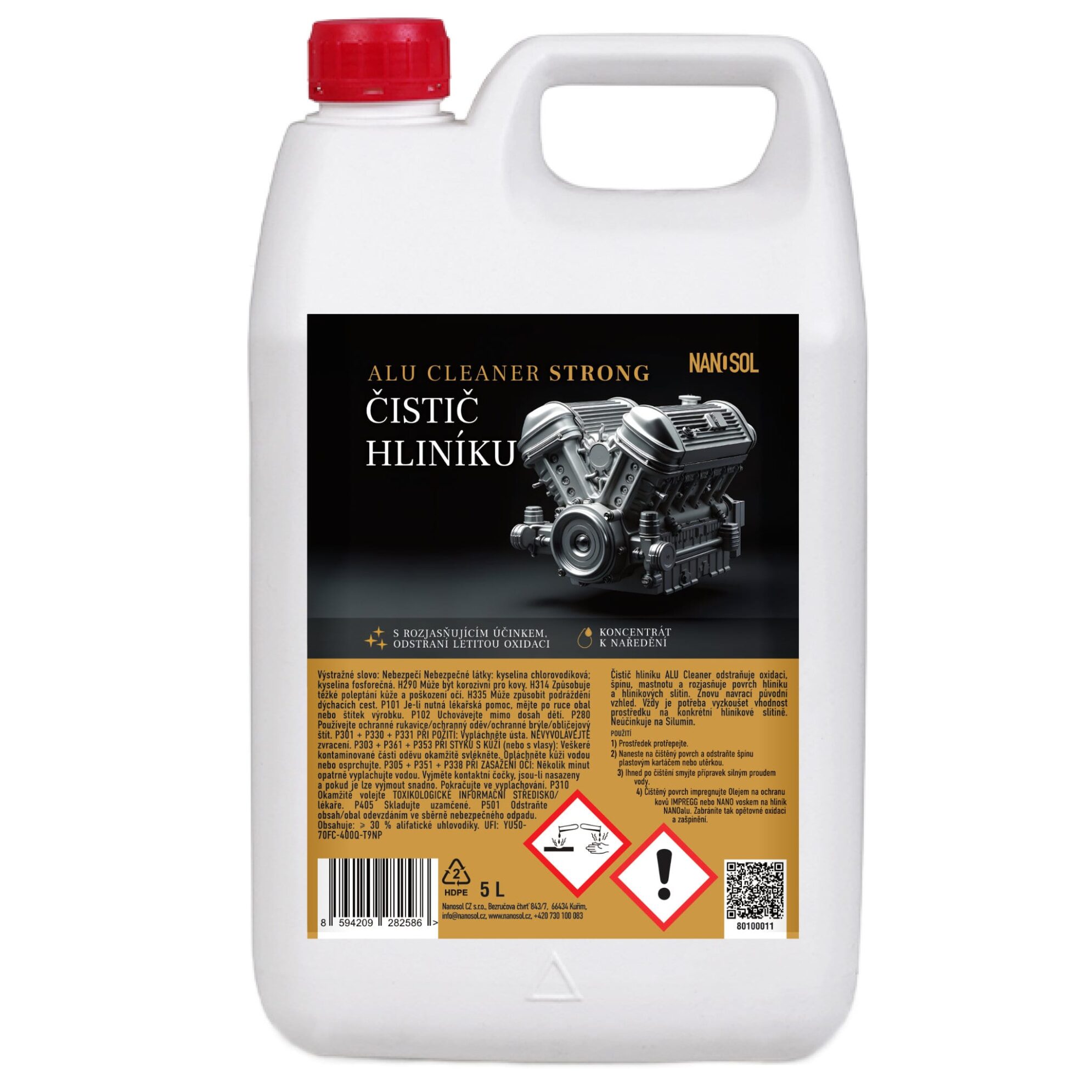 Koncentrát Čistič hliníku ALU CLEANER STRONG – extra silný čistič, odstraňuje oxidaci, špínu, mastnotu a rozjasňuje povrch hliníku a hliníkových slitin. Znovu navrací původní vzhled, působí velmi rychle. Neúčinkuje na Silumin. Vhodné použít i na hliníkové neeloxované fasády.