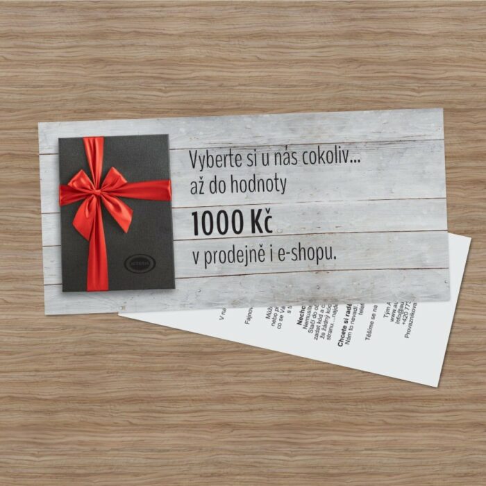 Dárkový poukaz v hodnotě 1 000 Kč dá možnost obdarovanému vybrat si to, po čem jeho srdce prahne. Zašleme ho v obálce vám, nebo přímo obdarovanému. Navíc můžeme přidat i váš originální vzkaz.