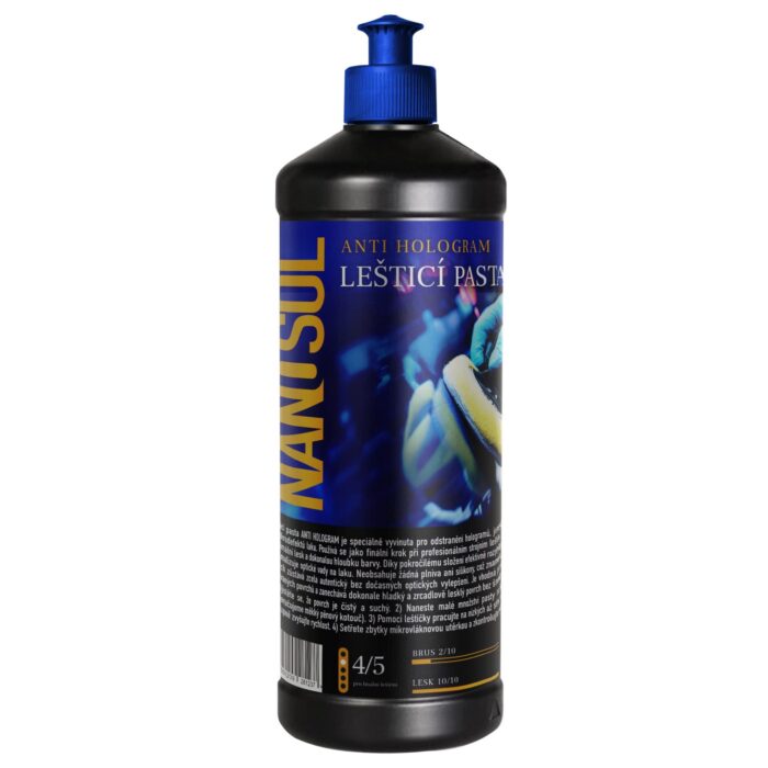 Lešticí pasta ANTI HOLOGRAM je speciálně vyvinuta pro odstranění hologramů, jemných škrábanců a mikrodefektů laku. Používá se jako finální krok při profesionálním strojním leštění, kde zajišťuje maximální lesk a dokonalou hloubku barvy.