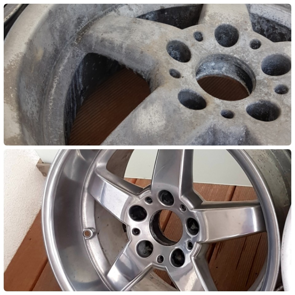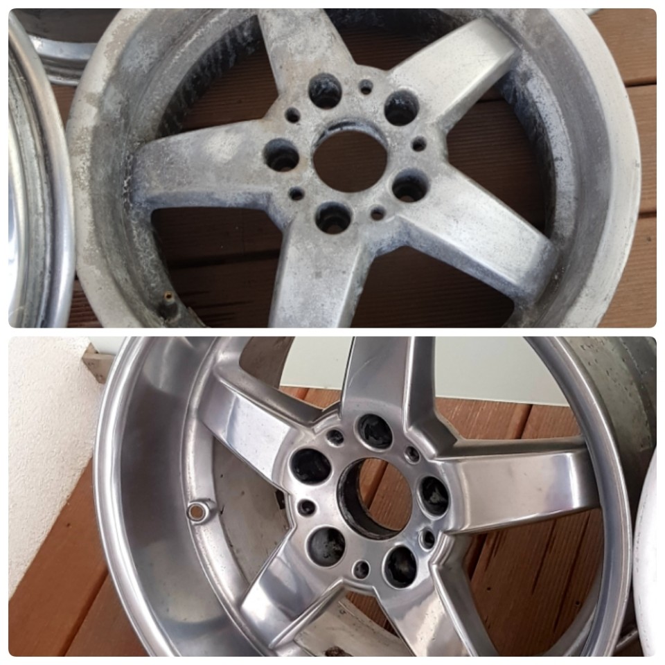 - leštění ALU kol (stručný postup od zákazníka: 1. krok smirkový papír P800,1200,3000,5000, 2. krok leštěnka Metal polish, 3. krok leštěnka Aluminium Polish)