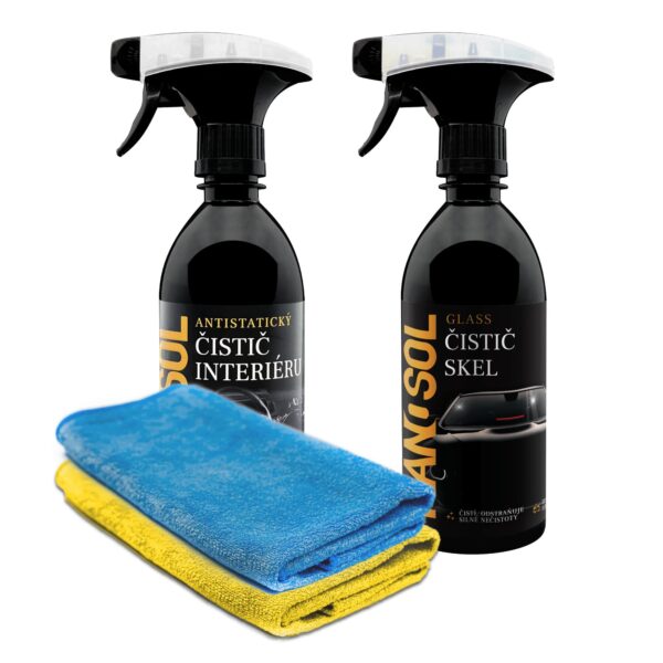 - S veškerými plochami interiéru a vší špínou si poradí antistatický Čistič interiéru INTERIOR a modrá utěrka z mikrovlákna. Vyčistí lakované, nelakované plasty, kůži i textil v interiéru auta a zanechá příjemnou vůni. Navíc má antistatický účinek, takže se na ošetřeném povrchu usazuje mnohem méně prachu.