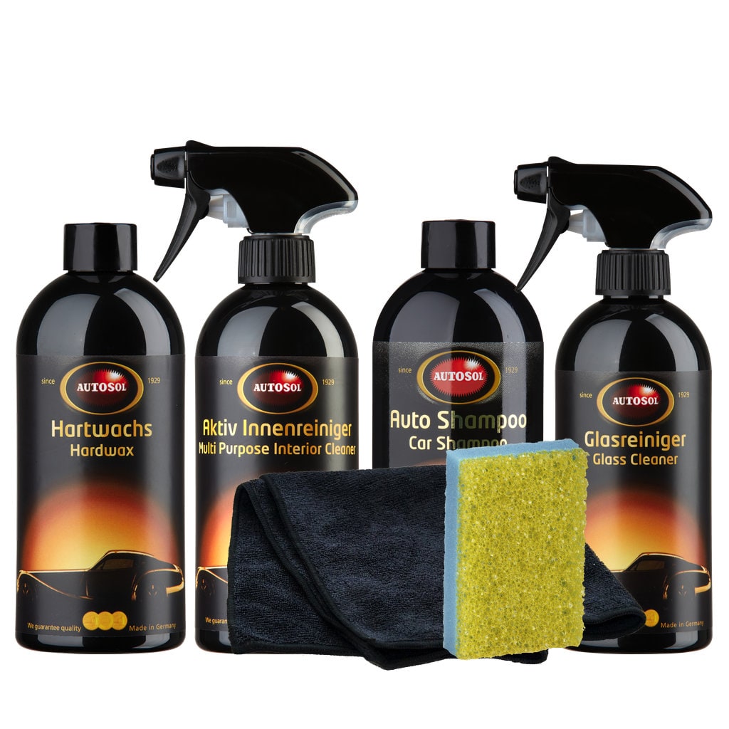 Sada, která obstará kompletní péči plechového miláčka. Autošampon vhodný pro časté mytí, čistič interiéru, vosk pro vysoký lesk a extra silný čistič skel. K tomu houbička a utěrka pro snadnější čištění.