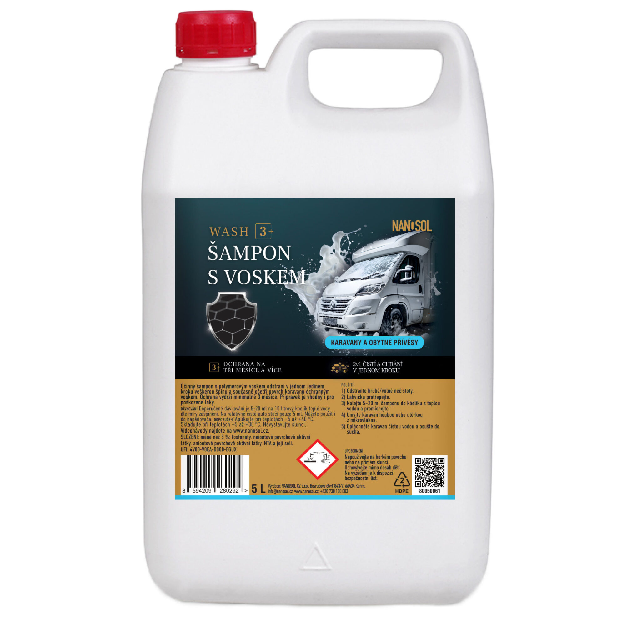 Šampon s voskem WASH 3+ na karavany a obytné přívěsy 5L