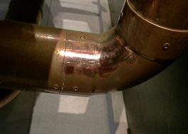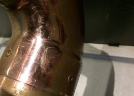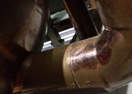 Na prvním obrázku je vidět jak trubky pivního tanku vypadaly. Špinavé, zašlé, což je při běžném provozu normální. Nejprve pivní tank utřete vlhkou mikrovláknovou utěrkou aby jste jej zbavili hrubých nečistot. Poté začněte nanášet naší šikovnou pastu Metal polish.